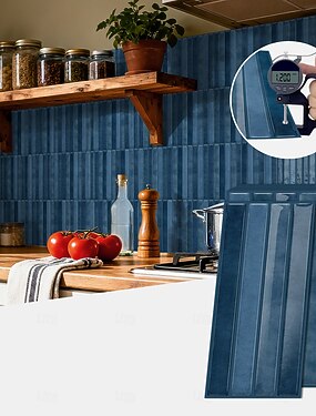 Lot de 20 stickers muraux 3D autocollants imitation carrelage, 24,6 x 12 cm, motif à rayures bleu foncé, repositionnables, parfaits pour la décoration de la crédence de cuisine, de la chambre ou du