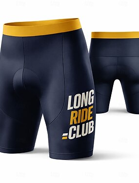 Cuissard de cyclisme homme bleu marine et jaune, modèle Long Ride Club, avec coussinet en gel 3D, respirant, à séchage rapide, évacuant l'humidité et protection UPF50+, idéal pour le cyclisme sur