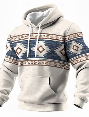 Homme Géométrique Aztèque Tribal Sweat à capuche Sweatshirt Ethnique Vintage Rétro manche longue Col ras du cou Extérieur Vêtements de rue Bleu Marron Vert Cordon de serrage Automne Hiver Designer S