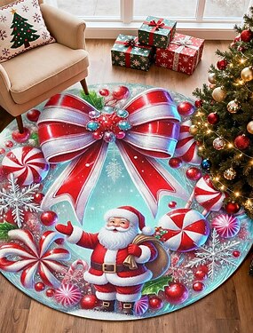 tapis rond de Noël du Père Noël pour le salon et la chambre tapis en faux cachemire Joyeux Noël doux et anti-dérapant lavable en machine tapis de sol pour les fêtes