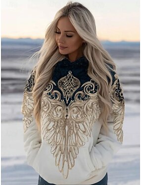 Femmes Sweat à capuche Imprimé Graphique Géométrique Chaud ancien Occasionnel manche longue À capuche Hauts Réguliers Occasionnel Rue Tenue Quotidienne Beige Automne Hiver