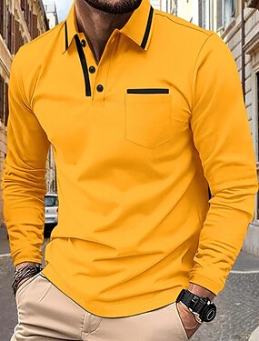 Homme Tee Shirt Golf polo de golf Travail Casual Revers manche longue basique Moderne Bloc de couleur Patchwork Bouton Printemps & Automne Standard Vin Abricot Noir Marine foncé Bleu Ciel Marron Tee