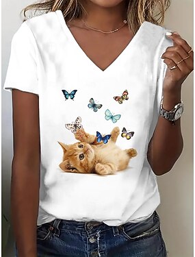 Fille 3D Chat Tee-shirts Chemises Manche Courte 3D effet Eté Actif Mode Le style mignon Enfants 3-12 ans Col Ras du Cou Extérieur Casual du quotidien Standard
