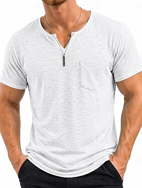 Homme Chemise Henley Tee-shirt Tricot Gaufre T-shirt Manches courtes À capuche Été Uni Mode Designer Basique Vacances Rue Sortir Blanche Kaki Vert Véronèse T-shirt haut de gamme pour homme