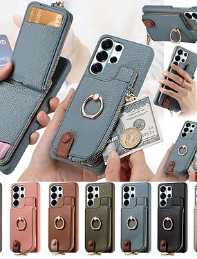 téléphone Coque Pour Samsung Galaxy S26 Ultra Plus S25 S25 Edge S24 S23 Ultra Plus S24 FE S22 Plus Ultra Étui Portefeuille avec Support Fermeture Éclair Protection complète du corps Rétro TPU faux