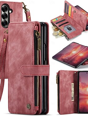téléphone Coque Pour Samsung Galaxy Pliage en Z 7 Étui Portefeuille Fermeture Éclair Protection complète du corps avec Lanière TPU faux cuir