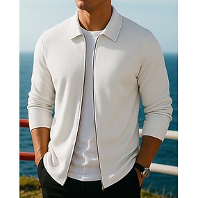Homme Couleur Unie Manteaux décontractés Veste de salon Veste entièrement zippée Automne / Hiver Gauffré manche longue Athleisure Extérieur Voyage Sportif Bleu Noir Blanche Tenue de sport Tenues de