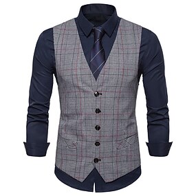 Homme Gilet Mariage Travail Entreprise du quotidien Entreprise Décontractées Hiver Poche Polyester Coupe Vent Séchage rapide Tartan Boutonnage Simple Col V Standard Gris Claire Gris foncé Café Gilet