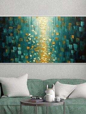 Mintura, peinture à l'huile abstraite verte faite à la main sur toile, décoration murale moderne, tableau roulé sans cadre ni châssis.