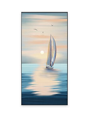Peinture à l'huile sur toile, réalisée à la main, représentant un paysage de lever de soleil sur la mer. Décoration murale idéale pour la maison. Toile roulée, sans cadre ni châssis.