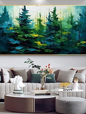 Mintura – peintures à l'huile sur toile faites à la main, forêt verte, grand art mural, décoration moderne abstraite, paysage d'arbres, image pour décoration intérieure, peinture roulée sans cadre,