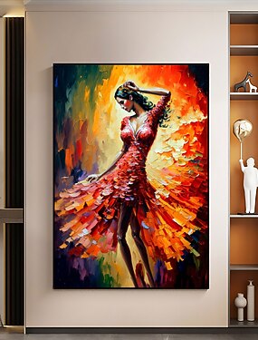 Peinture à l'huile sur toile, réalisée à la main, représentant une ballerine, idéale pour décorer un studio de danse à domicile. Toile tendue sur châssis ou roulée, sans cadre.