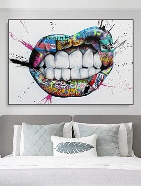 fait à la main peint à la main peinture à l'huile mur moderne peinture abstraite bouche graffiti toile peinture décoration de la maison décor toile roulée pas de cadre non étiré