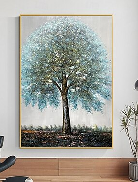 Mintura, peinture à l'huile sur toile épaisse texturée, représentant un paysage d'arbres, réalisée à la main. Décoration murale moderne et abstraite, sans cadre, livrée roulée et non tendue.