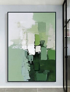 Peinture à l'huile artisanale sur toile, décoration murale abstraite verte à la texture texturée, idéale pour le salon, l'entrée ou la maison. Toile roulée, sans cadre ni châssis.