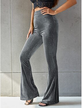 Femmes Pantalons Pantalon en velours côtelé Pantalons Évasés Leggings Vacances Mode Streetwear Longueur complète Taille haute Uni Coupe haute Confort Doux Respirant Élastique Quotidien Fête Vin Noir