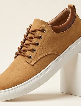 Baskets décontractées beiges pour homme, à lacets, légères et confortables, style minimaliste et bas, idéales pour la marche au quotidien, les voyages, les trajets domicile-travail, les tenues de week-end, les loisirs en plein air et un style décontracté.