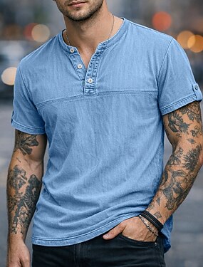 Homme Chemise Henley Chemise 100% coton délavée à l'acide Manche Courte Henley Été Printemps Automne Uni Rétro Vintage Occasionnel Le style rétro Lavé Occasionnel Bleu Ciel Marron foncé Noir T-shirt