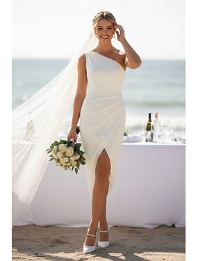 Fourreau Colonne Longueur cheville Robe Blanche Robe de Soirée Robes de mariée Robes pour enterrement de vie de jeune fille robe de mariée Élégant Petites Robes Blanches Sans manches Une Épaule