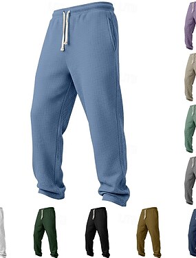 Homme Gauffré Joggings Pantalons Pantalon de survêtement droit Pantalon gaufré Cordon de serrage Taille Élastique Uni Respirant Longueur complète Extérieur Occasionnel Quotidien Vacances Style