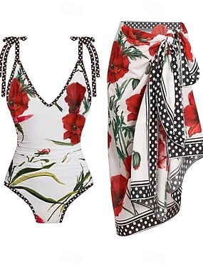 Femmes Maillots de Bain Une Pièce Tankini Monokini Jupe Maillot de bain Contrôle du ventre Taille haute Mince Dos nu Élégant Vacances Fleuri Col en V Sans manches Maillots de bain