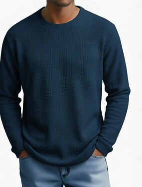 Homme Chemise gaufrée T-shirt Chemise à Manches Longues manche longue Col ras du cou Automne Printemps & Automne Uni Texturé Mode Designer Basique Pur Vacances Rue Occasionnel Noir Bleu Foncé Vert