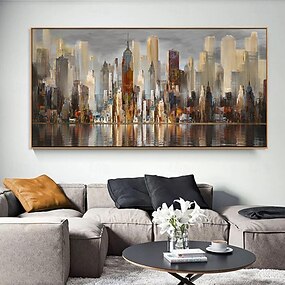 Peinture à l'huile faite à la main sur toile, décoration murale, paysage architectural abstrait moderne pour salon, décoration de maison, peinture roulée sans cadre, non étirée