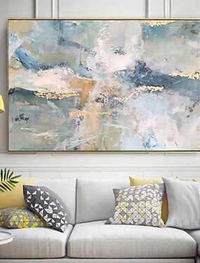 Peinture à l'huile faite à la main sur toile, décoration murale abstraite bleu doré pour la maison, le salon, la chambre à coucher, cadre tendu, peinture suspendue/peinture roulée sans cadre non