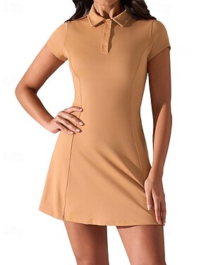 Femmes Couleur Unie Robe de tennis tenue de sport Manche Courte Patchwork Boutons Élastique Évacuation de la transpiration Respirant Tennis Le golf Badminton Col Polo Robe Marron Vêtements de tennis