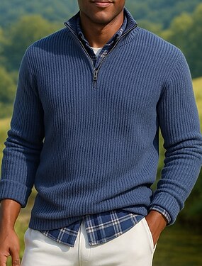 Homme Sweat-shirt quart de fermeture éclair manche longue Col montant Top Extérieur Chaleur Thermique Hiver Automne Polyester Noir Rouge Bleu Tennis Le golf Course