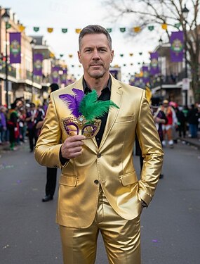 Mardi Gras 2026 Pantalon Costumes & Blazers Blazer à Col Revers Métallique Couleur métalique brillante Adulte Homme Carnaval Mardi Gras Mardi gras Club Soirée Défilé de la Fierté Se déguiser