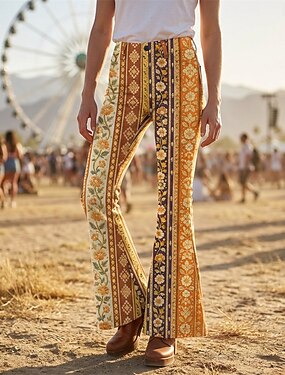 Rétro Vintage Boho Années 1970 Pantalon Pantalons à pattes d'éléphant Hippie Disco Taille haute Fleuri Déguisement Femmes Halloween Carnaval Festival de Musique Soirée à thème rétro Adulte Pantalon