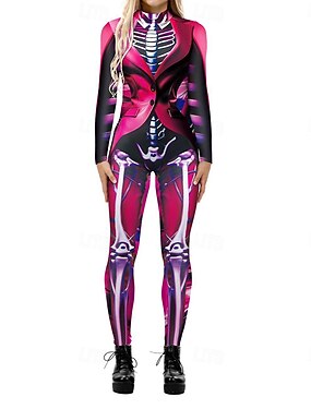 Costumes zentai à motifs Costume de cosplay combinaison Impression Costume de Carnaval Combinaison Intégrale Femmes Déguisement Sexy Halloween 3D Squelette Costume pour Performance Soirée Mascarade