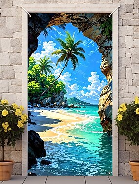 Affiches Couverture de porte Bannières extérieures Plage Tropical Mignon 3D Soirée Dortoir Chambre d'adolescents Résidence universitaire Chambre d'amis pour hommes dans une fraternité Arrière-plans