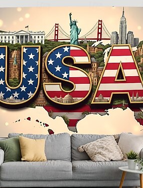 Jour de l'Indépendance tapisserie Bannières Couverture Drapeau Moderne 3D Chambre Salon Dortoir Chambre d'adolescents Résidence universitaire Porche mural Décoration d'intérieur