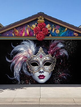 Mardi Gras Couverture de porte de garage Grande suspension Automatique Masque Plume Luxe Moderne 3D Soirée Outdoor Arrière-plans de prise de vue Porte d'Entrée Bal Masqué Décoration d'intérieur