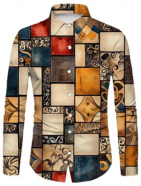 Rétro Vintage Années 1970 Chemise Disco Géométrique Psychédélique Déguisement Homme Halloween Carnaval Festival de Musique Défilé de la Fierté Soirée à thème rétro Adulte Chemise