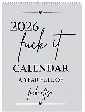 Calendrier mural à spirales « f*ck it » 2026, amusant, police audacieuse, style graffiti dessiné à la main, planificateur mensuel suspendu, calendrier décoratif humoristique pour la maison et le bureau