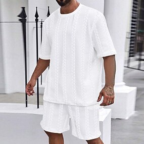 Homme Ensembles T-shirt Tenues 2 pièces Ensemble Short Manche Courte Col ras du cou Été Uni Mode Occasionnel 2 pièces Vacances Tenue quotidienne Sortir Noir Blanche Kaki T-shirt haut de gamme pour