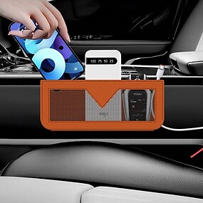 Sac de rangement universel pour voiture, filet de rangement avec poche arrière de siège en maille pour téléphone, porte-cartes, organiseur de poche, sac de rangement latéral en maille PU, accessoire