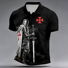 T-shirt des Croisés graphique Chevaliers Templiers col montant vêtements impression 3D causal jour commémoratif T-shirt à manches courtes impression lacée polyester mode vintage créateur