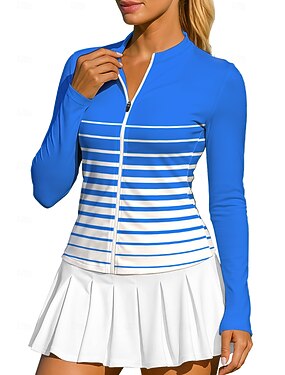 Femmes Géométrique Rayures Chemise T-shirt de sport T-shirt POLO Chemise de tennis manche longue Fermeture éclair Floral UPF50+ Résistant aux UV Haute élasticité Évacuation de l'Humidité Respirant