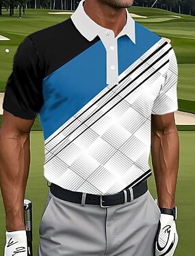 Homme Géométrique Golf Polos de Sport Manche Courte Polos Revers Occasionnel Athleisure Impression 3D Boutons Été Bleu Violet Vert