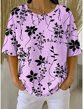 Femmes Tee-shirt Gaufre Tops tricotés texturés Fleuri Graphique Élégant Classique Manche Courte Col ras du cou Hauts Réguliers Occasionnel Quotidien Bleu Rose Claire Violet Vert Été Printemps