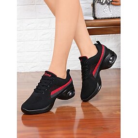 Baskets de danse jazz en maille rouge et noire pour femmes avec semelle fendue, design léger et respirant - chaussures d'entraînement professionnelles pour le hip-hop, la zumba et l'entraînement de