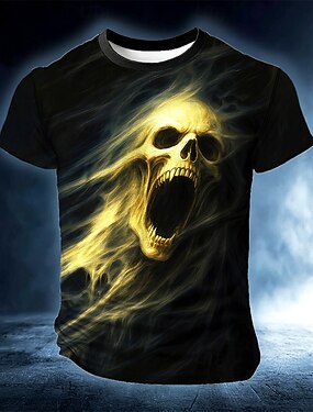 Homme Crâne Illusion d'optique 3D T-shirt Manche Courte T-shirt Impression 3D Col ras du cou Chemise Exagéré Designer Horreur Soirée Rue Occasionnel Jaune Bleu Orange Été Printemps Toutes saisons