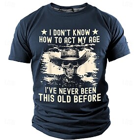 T-shirt graphique vert à manches courtes pour hommes - T-shirt humoristique avec crâne et chapeau de cowboy 'Je n'ai jamais été aussi vieux avant' - Humour sarcastique de style de vie
