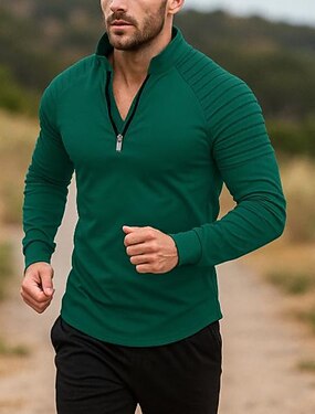 Homme Couleur Unie T-shirt de course T-shirt de Gym Haut de sport Automne / Hiver Quart de zip manche longue Athleisure Léger Respirant Salle de sport Randonnée Course Entraînement Yoga Noir Blanche