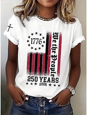 T-shirt Femme Patriote Journée de l'Indépendance Anniversaire Américain Imprimé Graphique Drapeau Drapeau Américain Élégant Classique Décontracté À Manches Courtes Encolure Ronde Hauts Quotidiens
