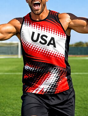 Homme Maillot de football Géométrique Bloc de Couleur Lettre USA Débardeur d'entraînement Débardeur de course T-shirt de sport Été Bloc de Couleur Sans manches Athleisure Spandex UPF 50 Séchage